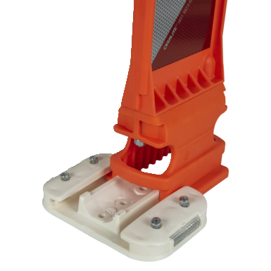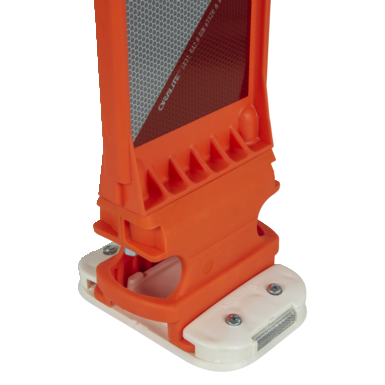 Die Leitboy-Fußplatten L49.2R eignen sich für Leitboy III von horizont sowie für Sichtzeichen. Reflektoren seitlich an der Fußplatte erhöhen die Sichtbarkeit.