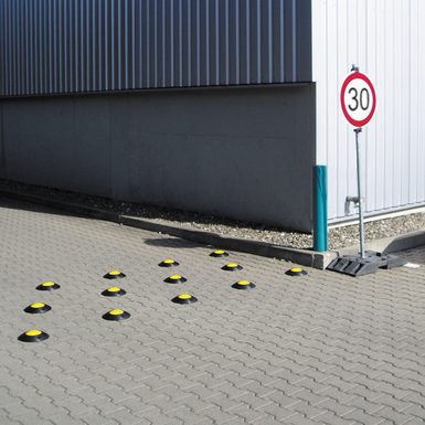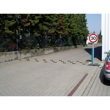 Bei Befahrung reduziert der Speedstop mit 40 mm Höhe die Maximalgeschwindigkeit von Verkehrsteilnehmern merklich. Parkhäuser, Straßen und innenstädtische Bereiche lassen sich daher zuverlässig gegen zu schnelles Fahren absichern.